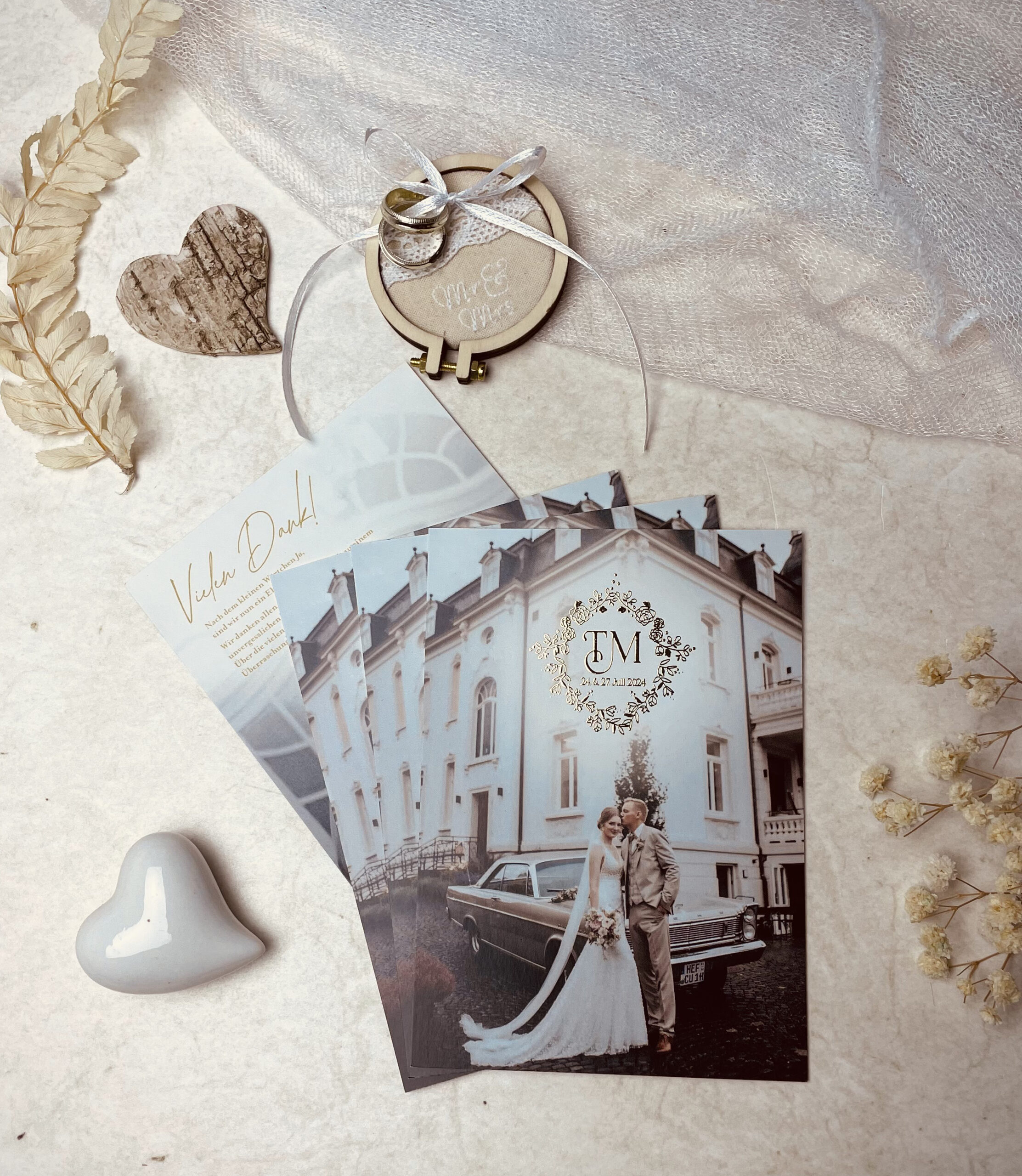 Dankekarten für die Hochzeit mit goldener Heißfolienprägung – Stilvoll Danke sagen